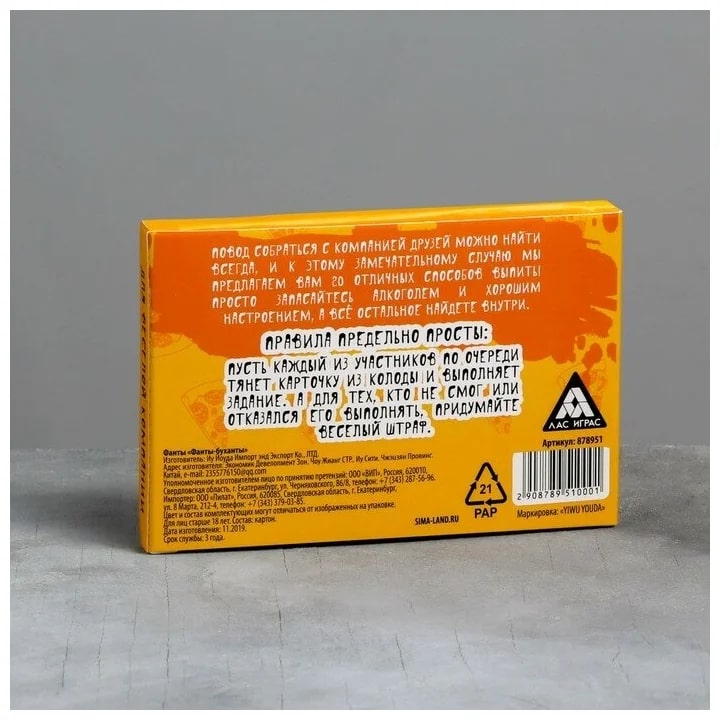 Купить игра для компании "фанты буханты" 20 карт от 100 руб. с доставкой до пункта выдачи в Советском. Интернет магазин ДекаМаркет. Оплата при получении.